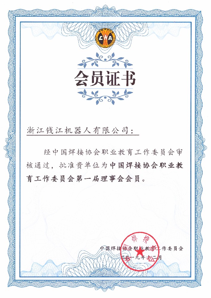 焊接協會會員證書